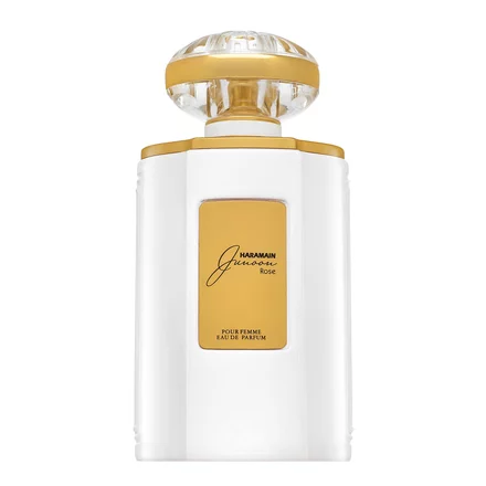 Al Haramain Junoon Rose ir izsmalcināts, īpaši sievišķīgs un romantisks aromāts no greznās Junoon kolekcijas. Šīs smaržas iemieso samtainu maigumu, tīrību un pārlaicīgu eleganci. Tas ir aromāts sievietei, kura novērtē smalku, bet noturīgu smaržu, kas atgādina greznāko kosmētiku un svaigi uzziedējušus dārza ziedus.